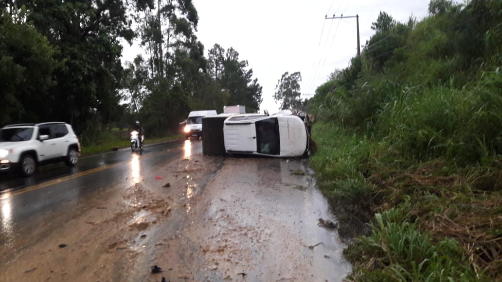 Um veículo capotou na SC-108 no final da tarde dessa quinta-feira (23), no bairro Rio Maior, em Urussanga. Quando o Corpo de Bombeiros da cidade chegou ao local, encontrou o veículo lateralizado no meio da pista direita, não houve vítimas.