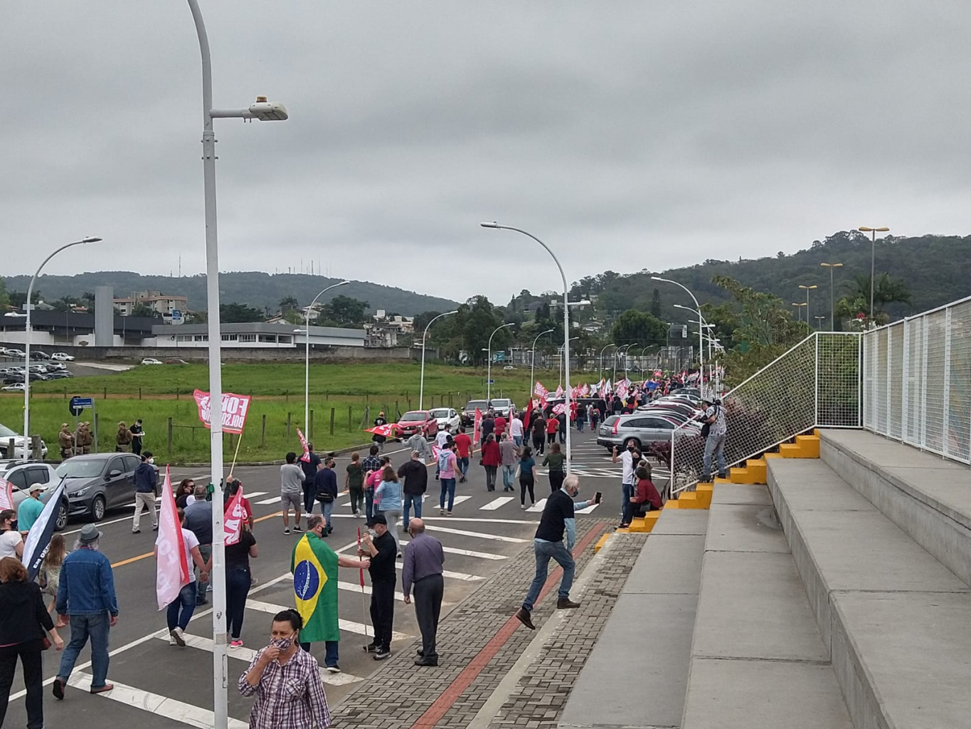 Na manhã deste sábado, 02, manifestantes se reuniram na Rua da Gente, ao lado do Parque Cincinato Naspolini (Parque das Nações) para protestas contra o presidente Jair Bolsonaro. Os participantes começaram a chegar ao local às 9h30 e saíram em caminhada até a Praça Nereu Ramos, no Centro, um pouco depois das 10h. Com a presença de figuras importantes no cenário político criciumense, a mobilização foi acompanhada pelo Patrulhamento Viário e a Polícia Militar de Criciúma para garantir a segurança e a fluidez das vias da cidade.